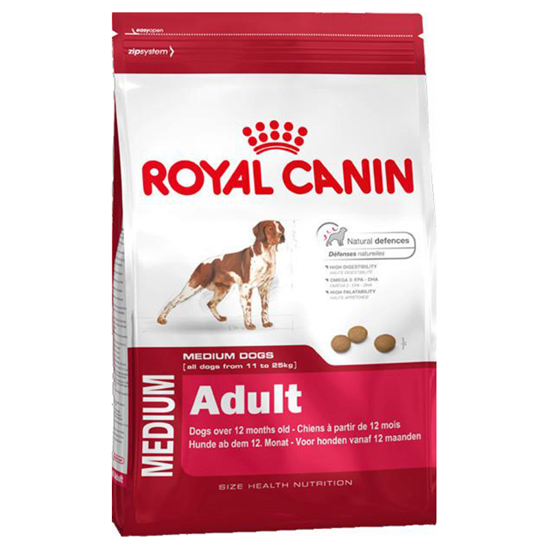 Medium Adult es una fórmula nutricionalmente completa y equilibrada, especialmente diseñada para satisfacer las necesidades particulares de tu perro mediano y darle apoyo durante su edad adulta. Este alimento es adecuado para perros medianos que pesen entre 11 y 25 kg y tengan más de 12 meses. Los perros medianos necesitan ejercicio regular para un desarrollo muscular adecuado. Esta fórmula está diseñada para ayudar a mantener la masa muscular con su contenido específico de proteínas de alta calidad. El estilo de vida activo expone a los perros medianos a elementos ambientales que pueden debilitar su sistema inmunitario. Esta fórmula contiene prebióticos y una combinación de vitaminas, incluidas.