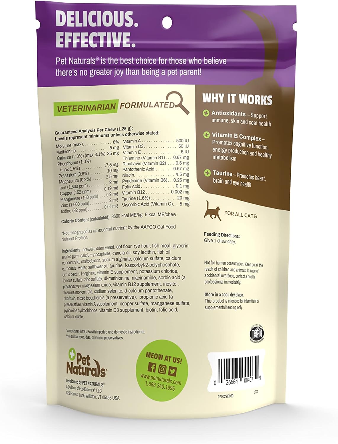 ¡Ayuda a tu gatito a verse y sentirse mejor todos los días con este multivitamínico todo en uno! Los deliciosos masticables con sabor a pescado están repletos de más de 25 nutrientes clave, incluidas las vitaminas B y los minerales esenciales, como parte de una dieta completa y equilibrada. Apoya la salud del corazón, el cerebro, el sistema inmunitario, la piel y el pelaje, al mismo tiempo que es una excelente adición a las dietas caseras o crudas.