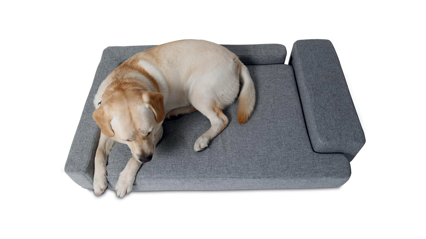 El sofá rompecabezas para mascotas brinda un espacio cómodo y acogedor para descansar. Cuenta con espuma viscoelástica que ofrece máximo soporte en todas las edades y bordes reforzados en tres lados para mayor apoyo de cuello y cabeza, favoreciendo un sueño más reparador. Es fácil de limpiar y montar, con funda extraíble impermeable que se retira mediante cremallera. Su ensamblaje es práctico, sin tornillos ni herramientas: solo une las tres piezas y listo.