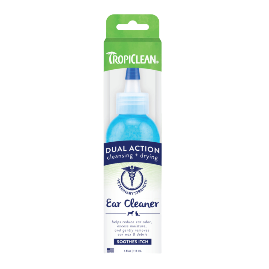 El limpiador de oídos de doble acción TropiClean elimina de manera segura la cera y los desechos al mismo tiempo que reduce el olor para mantener los oídos de las mascotas limpios y saludables. Esta fórmula de limpieza recomendada por veterinarios se seca rápidamente para ayudar a reducir el exceso de humedad y prevenir infecciones de oído.